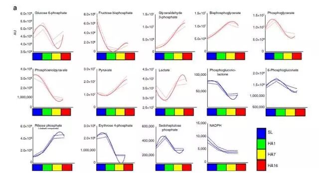 当志愿者到达高海拔地区后,开始进行检测。结果显示,在12小时内,血细胞的氧释放能力增加了约20%,并在之后的16天中继续增强。非靶向代谢组学检测发现红细胞中2,3-BPG(2,3-bisphosphoglycerate, 二磷酸甘油酸)含量在12小时内明显增加,此后一直保持较高的含量。