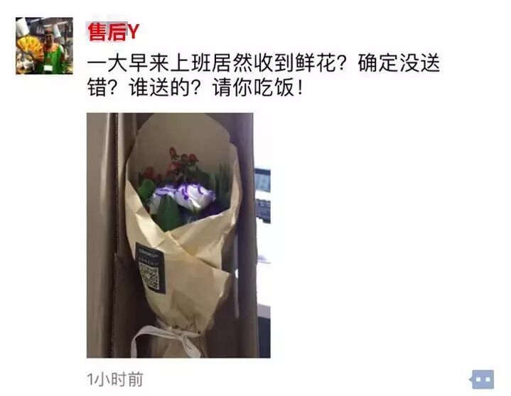 今天,公司的一位售后同事Y收到了一束没有署名的花……
